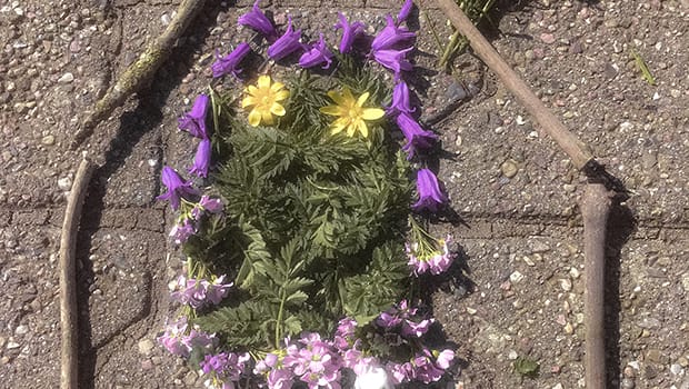 »Man kan skabe land art alle steder, også i en park eller en skolegård. Det handler bare om, at der skal være nogle blomster, blade, småsten – man kan bruge nærmest hvad som helst. Og det er ikke kun for indskolingselever heller. Man kan lave land art med alle klassetrin, det afhænger helt af, hvilke opgaver man stiller«.