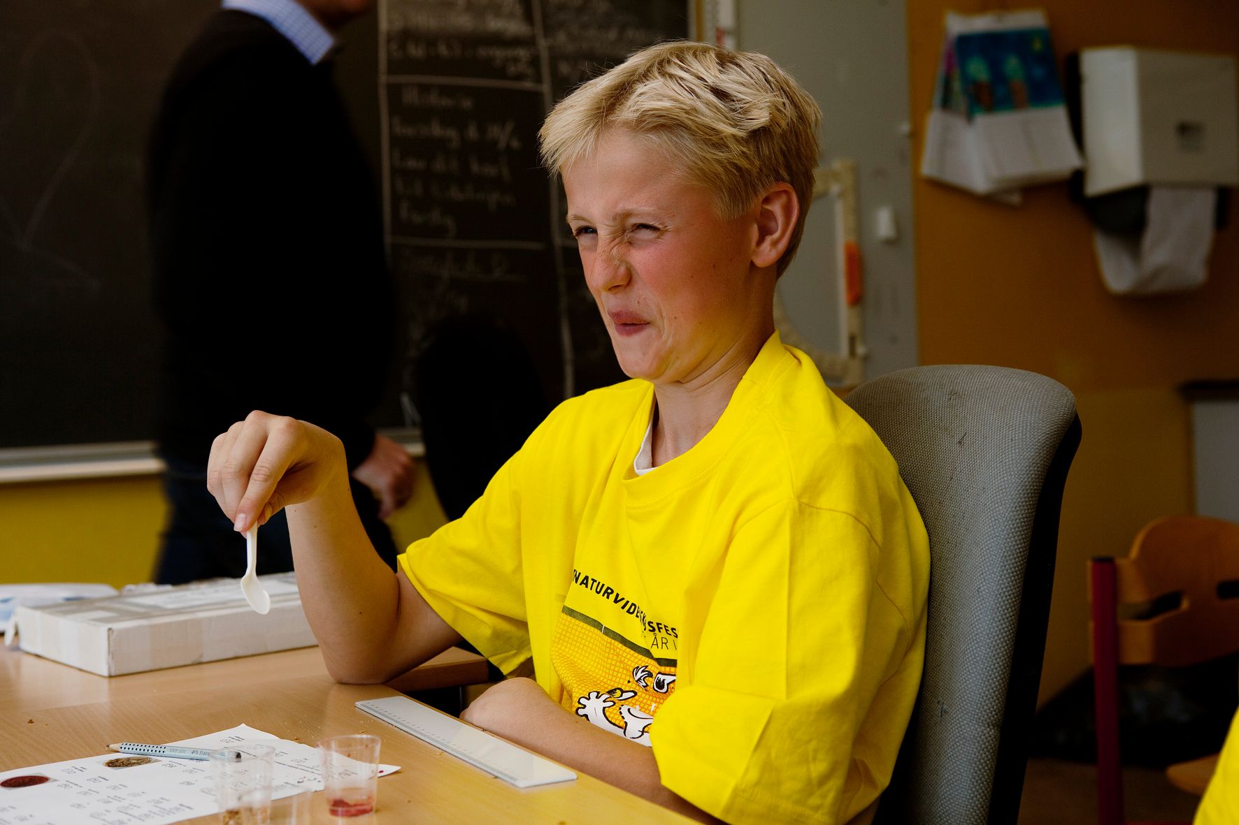 Eleverne smagte på ymerdrys, tang og myseost. Desuden fik de en smagetest på et bitterstof - Phenylthiocarbamid (PTC) - som nogle kan smage, mens andre ikke kan smage det. Eleverne blev også udsat for duftprøver blandt andet af korianderolie lavet på blade fra koriander.