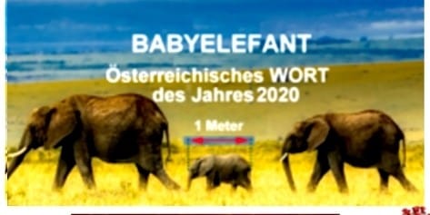 Østrigerne er ikke uden humor og finurligheder. I 2016 var årets ord her; Bundespräsidentenstichwahlwiederholungsverschiebung (prøv lige at sige det meget hurtigt). En morsom betegnelse for det kaos der opstod ved præsident-omvalget det år. I år er ordet Babyelefant. Også i coronaens tegn, da det i folkemunde og med glimt i øjet symboliserer den afstand, der er nødvendig i disse tider.
