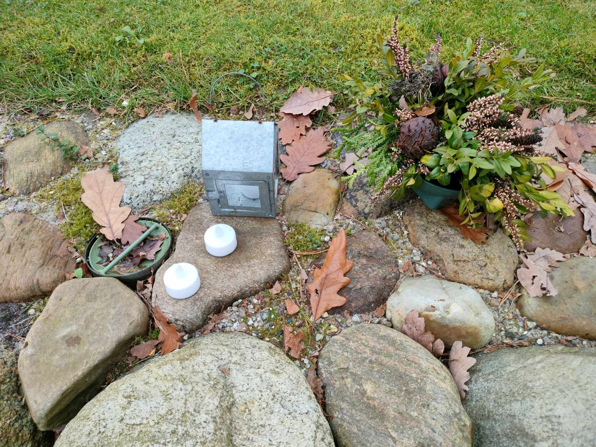 På kirkegården samledes vi ved fællesgraven. Her fik eleverne et oplæg om allehelgen og alle sjæles dag. Vi talte om dagenes udvikling gennem tiden. Til sidst fortalte jeg om allehelgens gudstjeneste anno 2024. Jeg fortalte om de lys, mange bærer ud til gravstedet efter gudstjenesten og om, hvordan man nogle steder synger 'Hil dig frelser og forsoner'. Jeg læste herefter det sidste vers fra salmen op, og bad eleverne gå rundt to og to og tale om, hvad verset betyder og give et bud på, hvad det kunne betyde.