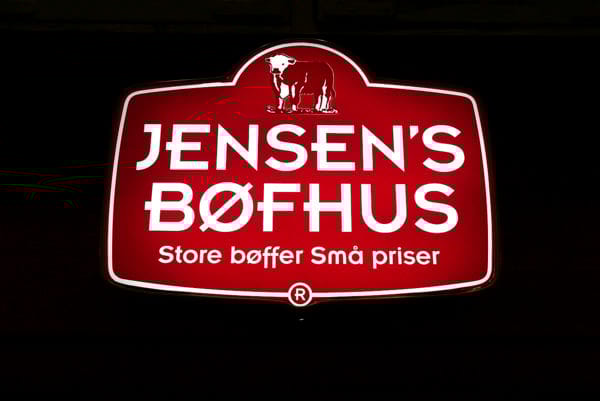 Det kan koste dyrt at bruge en apostrof forkert. I 1990 grundlagde restauratøren, Palle Skov Jensen, en restaurantkæde, som han indregistrerede og markedsførte under navnet Jensen’s Bøfhus med apostrof-s. Denne form er imidlertid i modstrid med gældende dansk retskrivning, og Palle Skov Jensen måtte gang på gang høre for den forkerte apostrof. Skov Jensen var imidlertid stædig, og det tog 26 år at gøre ham så mør, at han i 2016 ændrede navnet på sine 23 danske, 8 svenske og 2 norske restauranter til Jensens Bøfhus uden apostrof. Det må have kostet ham en mindre formue at ændre alt reklamemateriale, alle navneskilte m.v.