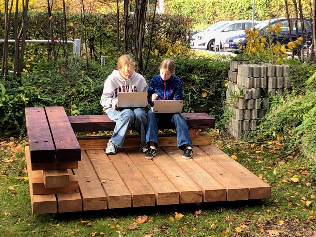 Lige nu står møblerne foran vores midlertidige udskolingsbygninger, men de skal helt sikkert med tilbage på vores skole, når vi flytter hjem. Hvem ved, måske kan vi endda være sammen om at researche og analysere behov i vores nye uderum og dermed designe vores nye skolegård eller dele deraf, hvor vores byrumsmøbler så kan indgå.
