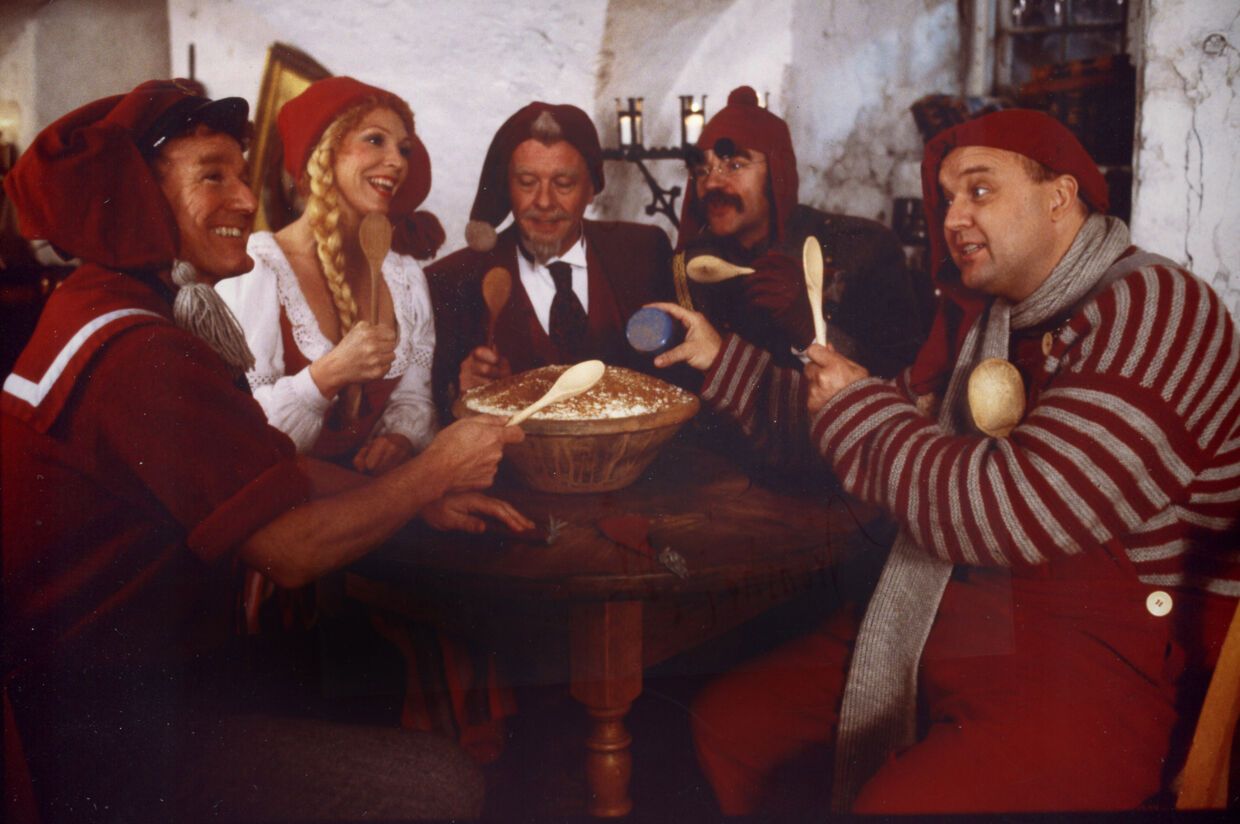 Vi husker alle risengrødssangen fra "Nissebanden i Grønland", hvor Hr. Mortensen, Gemüse, Skipper, Lunte og Puk sender deres træskeer rundt i ring under det ørehængende omkvæd!Hvis ikke det ringer en juleklokke, kan du se et kort klip her: