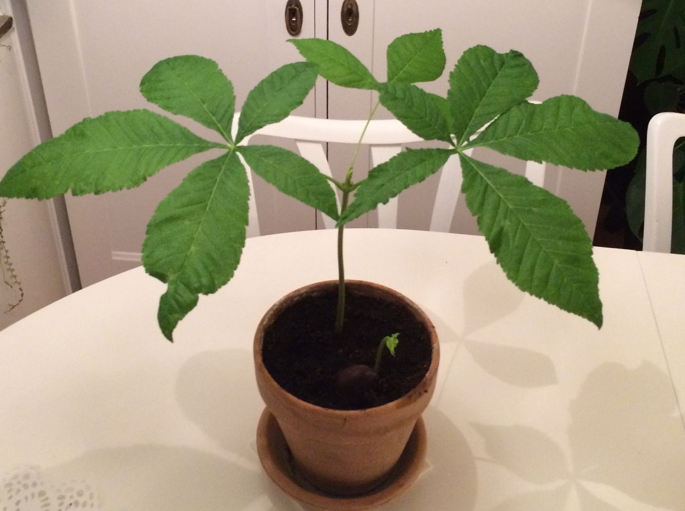 Et opgave på læreruddannelsens første modul i natur/teknologi går ud på at følge et træ i de 3-4 måneder semesteret varer. Det er en individuel opgave og er en forudsætning for at bestå modulet. Den studerende skal dokumentere sine besøg med billeder og læsning af fag og skønlitteratur om træet. Det får de rigtig meget ud af fortæller de når de er færdige. I begyndelsen er de noget usikre. Vi samler også frø af træer og forsøger at spire dem. Her er en kastanjespire og Piet Heins fantastiske digt fra 1948-Det passer jo godt til en ny lærerspire !