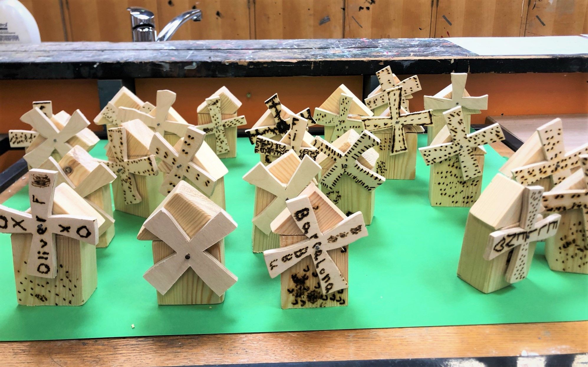 Hvis der er tid, kan eleverne dekorere møllen med brænderen.