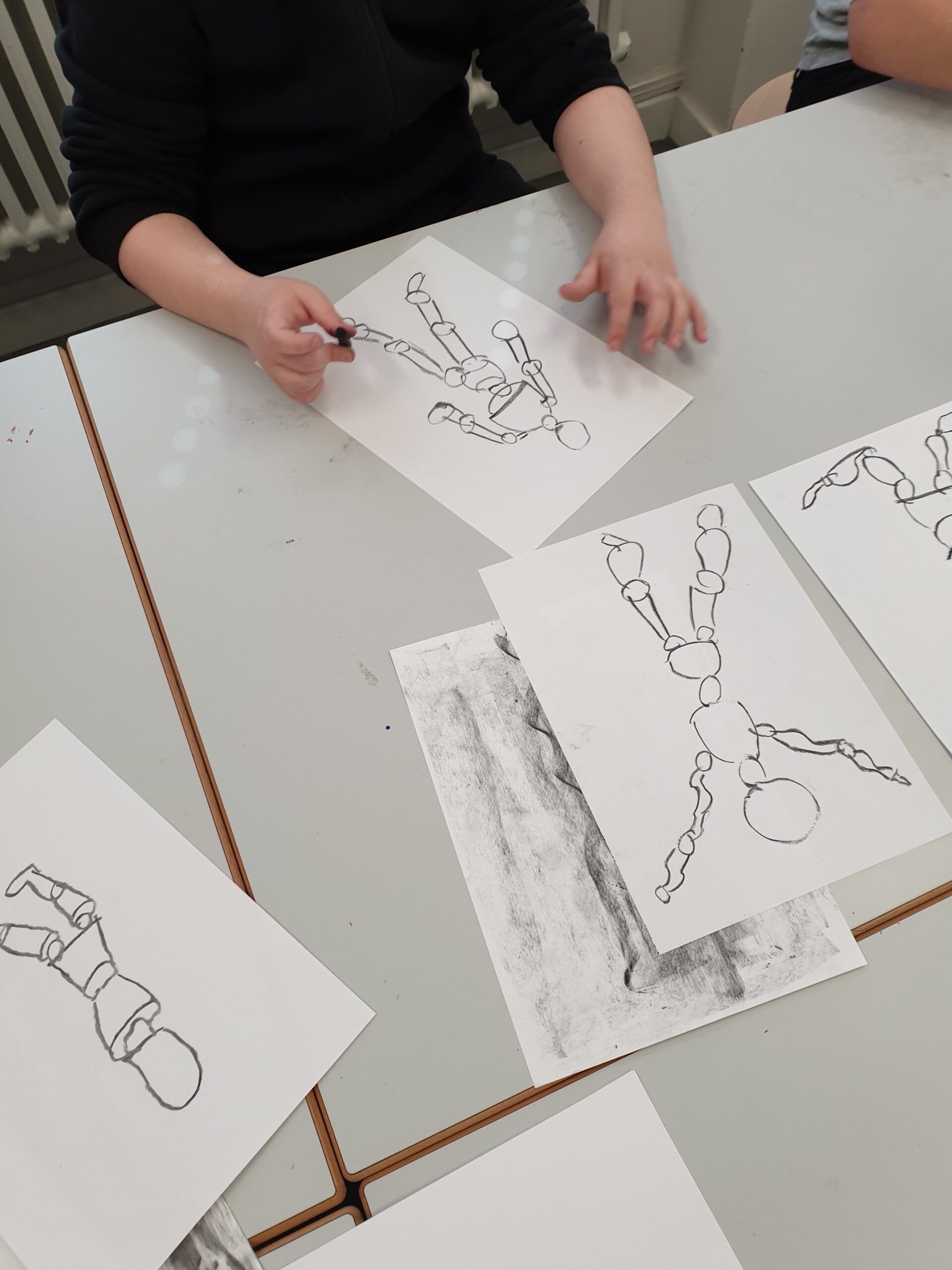 I dag fik de kul mellem fingrene, afprøvet hurtigskister, fik udforsket kropssprog og formet mini skulpturer i stanniol og ståltråd.