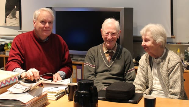 Finn Verner Nielsen, Bjarne Belhage og Gerd Belhage i Dansk Datahistorisk forening, april 2019 (privatfoto)