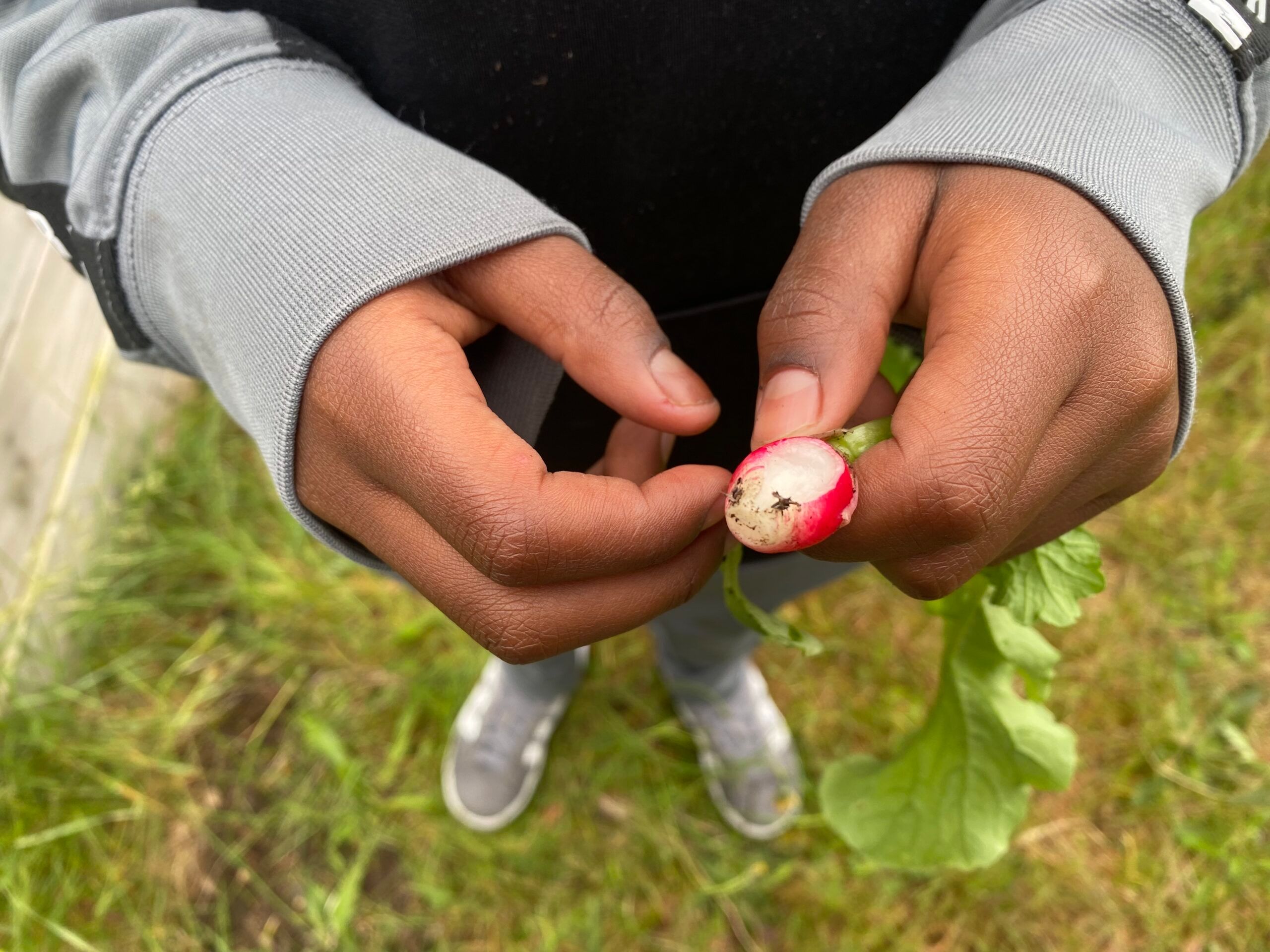 Vi har snart haft haven i to år, og de bedste undervisningssituationer har jeg stadig ude i haven. Det er når en elev fra indskolingen kommer spurtende hen til mig, fordi nogle af jordbærrene er blevet røde, eller når vi er ”madmodig” sammen og smager radiser for første gang i vores liv. Eller når 9.klasses eleverne tager censor med ud i haven for at se på kløvernes rodknolde, kaste med Raunkjærs cirkel eller bruger insekthotellerne som udgangspunkt for undersøgelser med biodiversitet i haven og på fodboldbanen.
