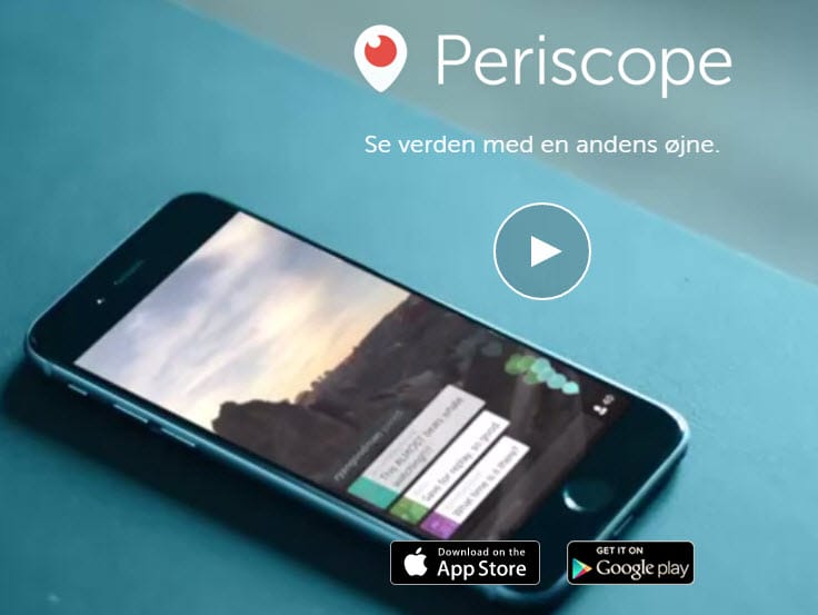 Periscope er en app, som kan bruges til at streame live-optagelser via telefon eller tablet. Tjenesten er tilknyttet Twitter, og så snart der startes en udsendelse, vil der genereres et tweet på brugerens Twitter-profil med et link til optagelsen. Optagelsen ses live eller op til 24 timer efter udsendelsen. I løbet af samtalen kan stilles spørgsmål i en chat-funktion, og der kan likes i form af hjerter, når der er gode ting på skærmen.