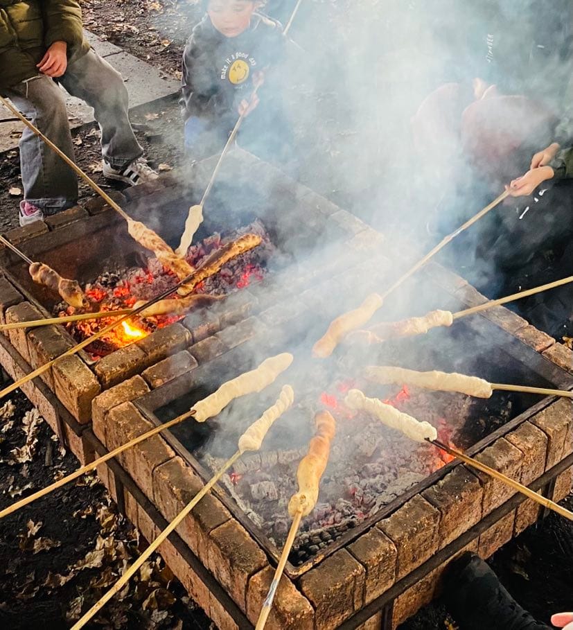 Søndag eftermiddag var jeg med min yngste til et klassearrangement i en bålhytte på skolens område. Folk tog selv drikkelse med, og så havde forældrerådet købt en spand dej ved bageren samt kiks og skumfiduser i supermarkedet.