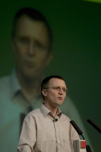 DLF-formand Anders Bondo Christensen talte i en halv time for 2500 tillidsfolk, der gav ham stående applaus.