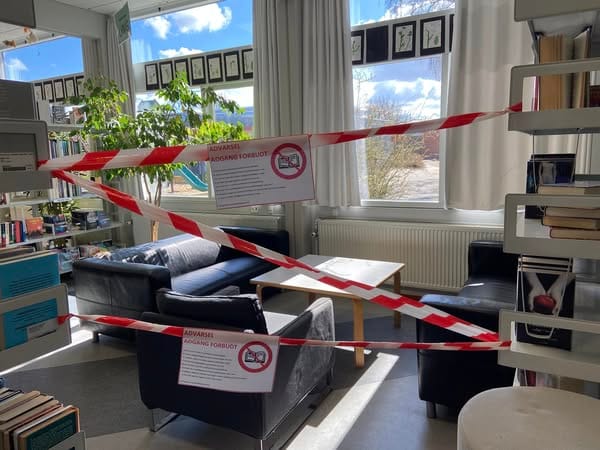 ”Vi har desværre set os nødsaget til at lukke ungdomsbiblioteket på ubestemt tid, mens vi gennemlæser alle de 1009 ungdomsbøger, vi har. Vi giver besked, når her igen er trygt for de unge at låne bøger”.