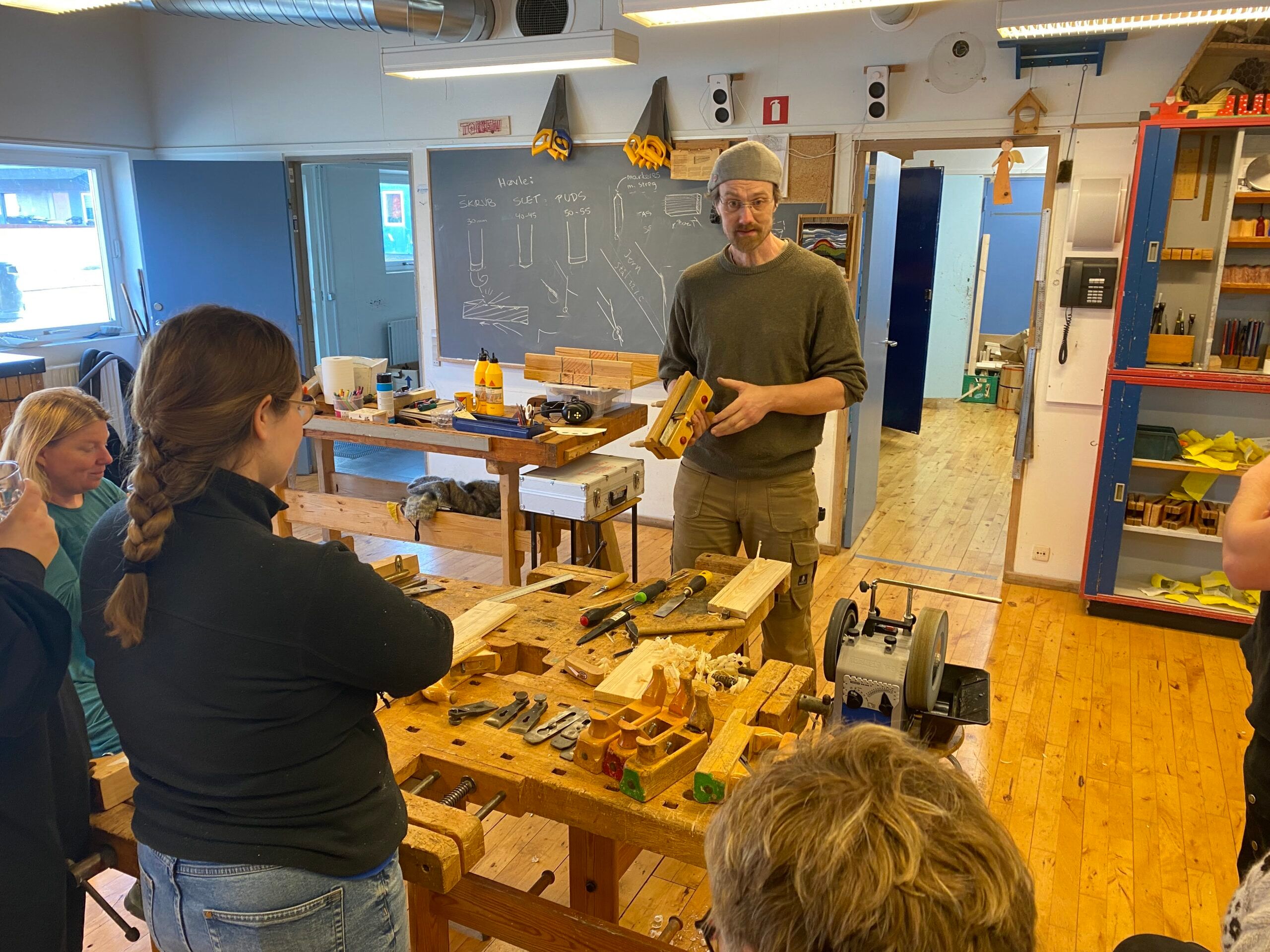 På dette kursus underviste han sammen med Rune J. Johansen, som udover mange år som håndværk og designlærer er udlært møbelsnedker, kandidat i materiel kultur og også underviser på læreruddannelsen.
