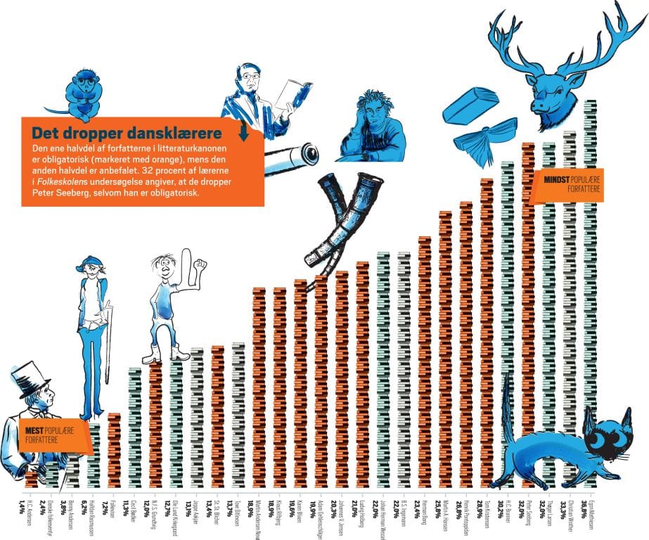 I 2005 kom der for første gang helt præcise navne på 14 forfattere og én litterær genre, som alle elever i den danske folkeskole skal stifte bekendtskab med – plus yderligere et tilsvarende antal, som eksperterne og ministeriet foreslår, at man også underviser i.