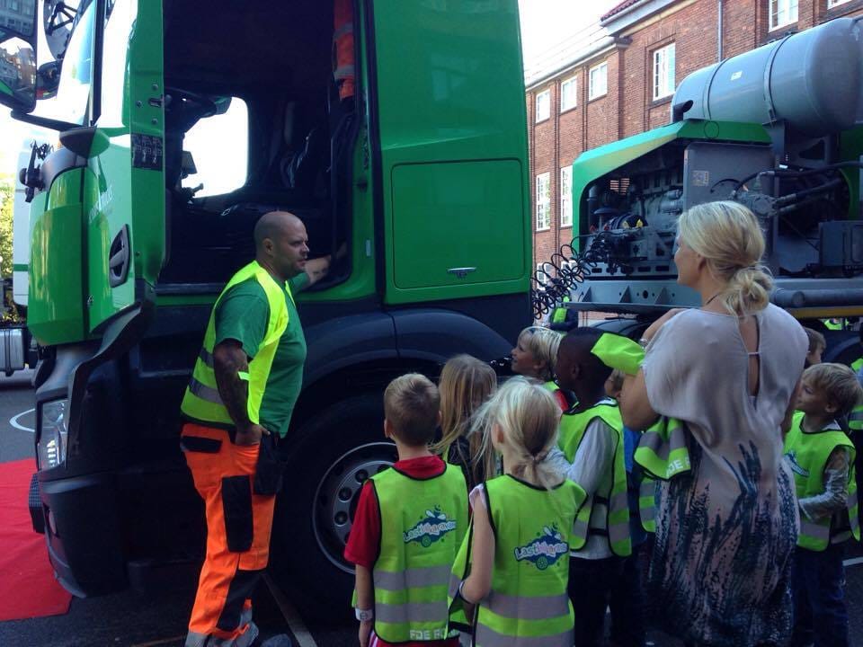 Storm og Johanne fra 0. klasse på Skolen på La Cours Vej på Frederiksberg genfortæller budskabet fra Lastbilkaravanen-sangen, som skespilleren i lastbilchauffør-kostume Magda har sunget for børnene. I dag var de to elever og deres klassekammerater op til 3. klasse på lynkursus i trafiksikkerhed. De skulle synge og danse med skuespilleren Magda, snakke med en vaskeægte politibetjent om færdselsreglerne, og så skulle de op i kabinen på en lastbil for at få øje på de blinde vinkler, hvor cyklister 15 gange om året i gennemsnit dør eller bliver hårdt skadede. La Cours Vej er første stop på den tre uger lange info-karavane, der skal besøge cirka 100 klasser mere.