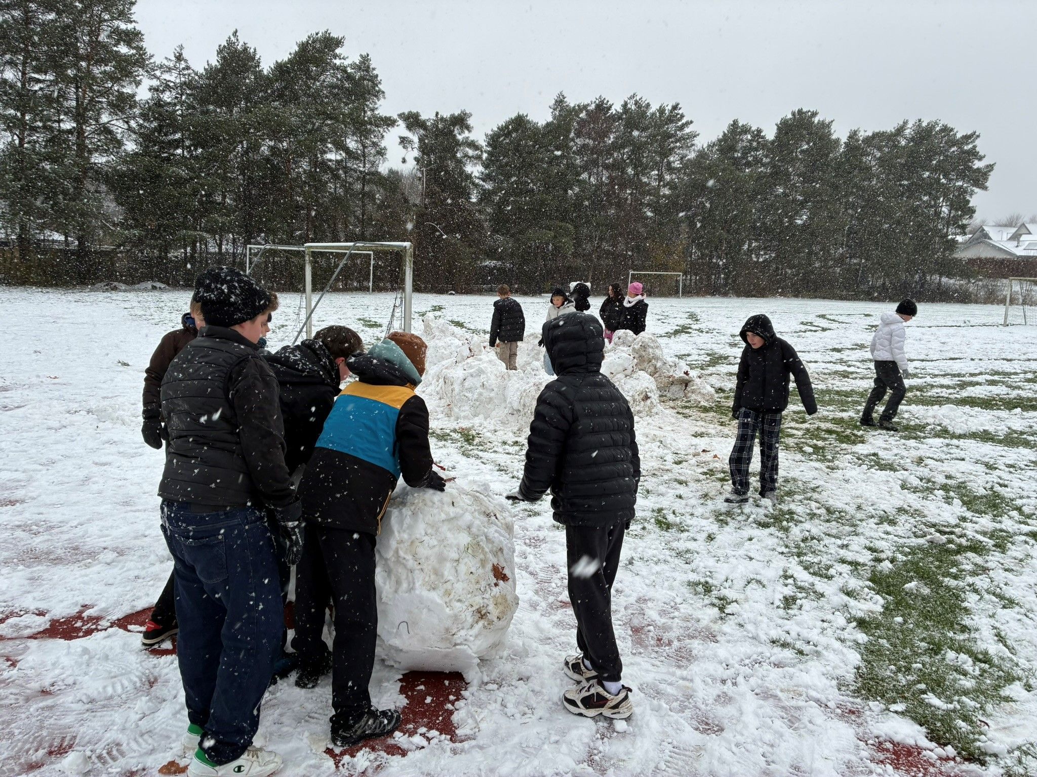 Faktisk er det ikke første gang, han har haft sine elever med i sneen. Inden juleferien var der et par dage med lidt lettere snefald. Ikke nok til at kunne kælke. Men nok til at bygge snemænd.