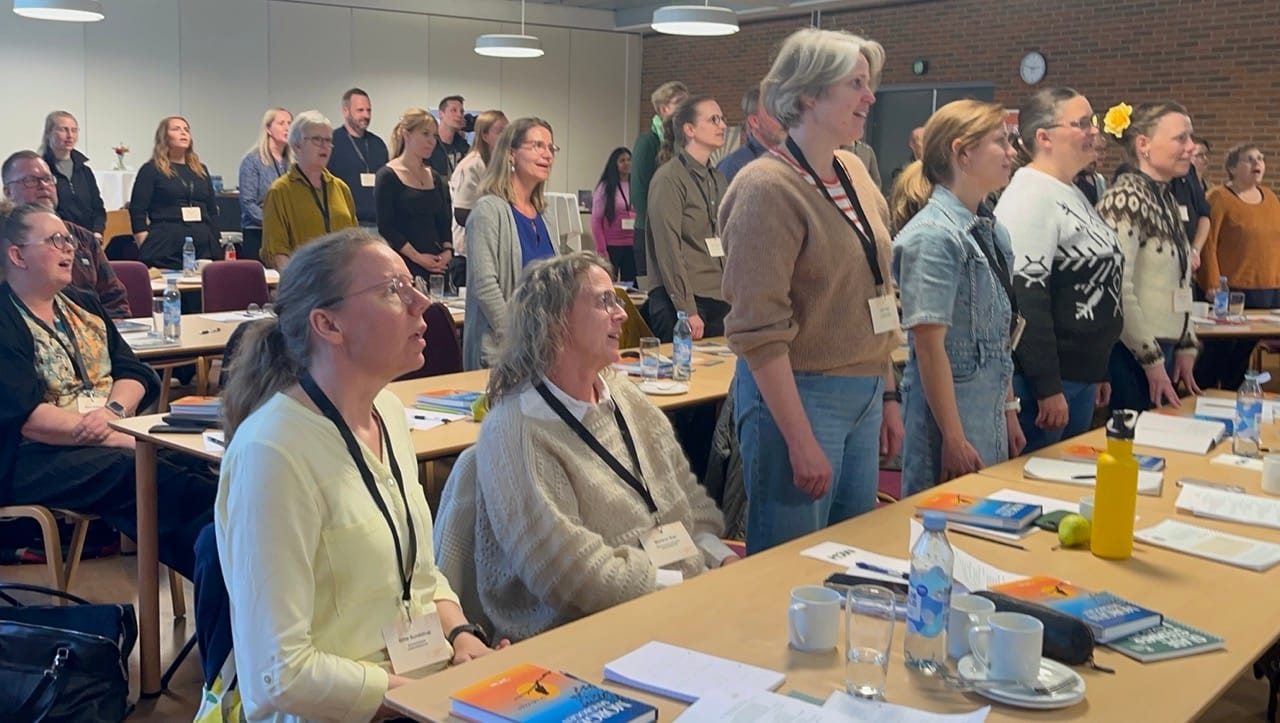Vi befinder os i Herning, og derudover har kurset været afholdt i Middelfart og slutter af i Ringsted i maj. Kurset er en del af regeringens fokus på morgensang.