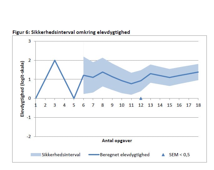 Den bedømmelse, der sker, mens eleverne sidder ved computeren, er en bedømmelse af elevens dygtighed på basis af, hvordan han eller hun har besvaret opgaver inden for bestemte sværhedsgradintervaller. Det er bedømmelsen af dygtigheden, der har vist sig en del mere usikker end lovet. Scoren herfra omsættes dernæst til en percentilskala, efter hvor mange elever i en referencegruppe, der har opnået den samme score.